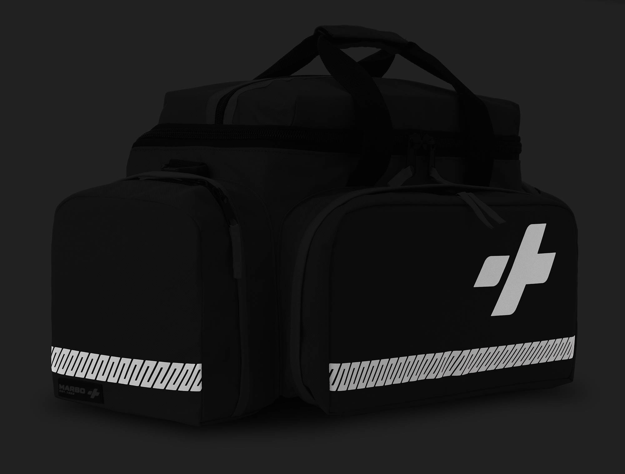 De hele tas wordt aangevuld met reflecterende elementen die de zichtbaarheid van de hulpverlener 's nachts aanzienlijk verbeteren.