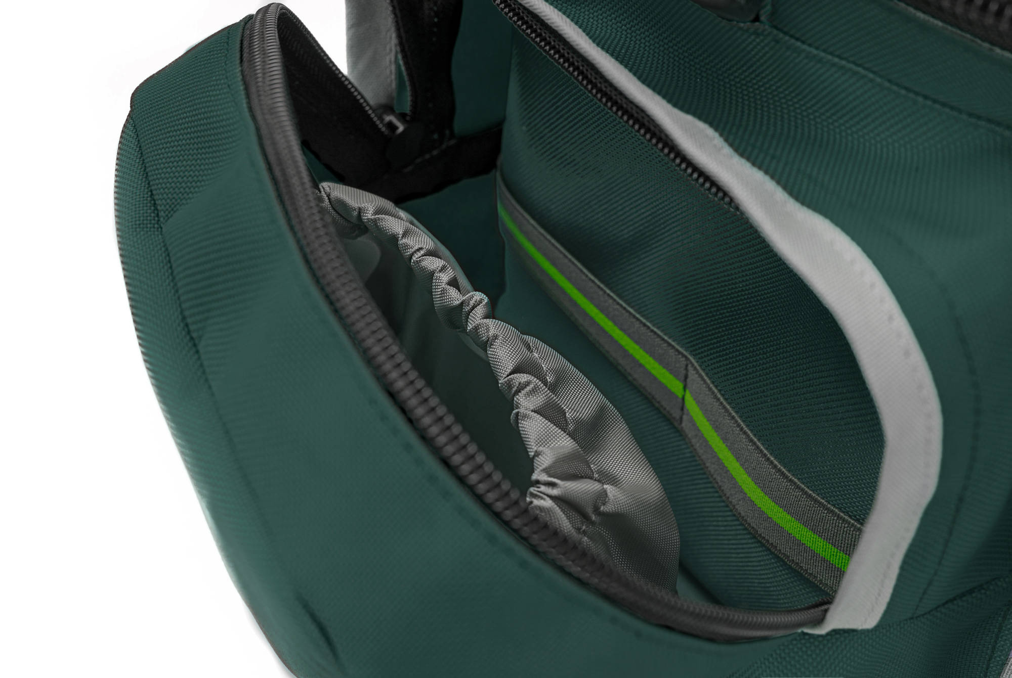 La entrada en forma de U al compartimento principal proporciona un fácil acceso a los artículos del interior.